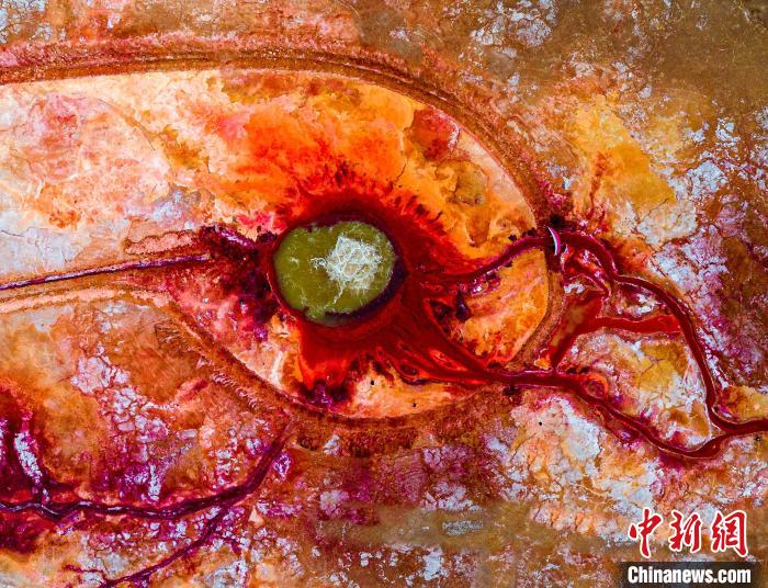 圖為無(wú)人機(jī)航拍“惡魔之眼”艾肯泉。莫啟明 攝