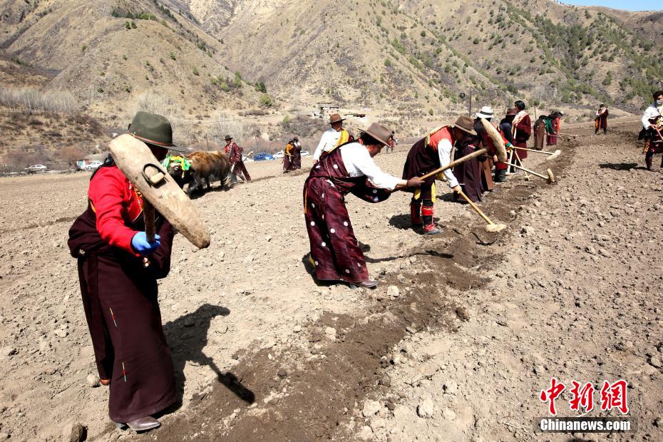 圖為身著節(jié)日盛裝的民眾進行耕地。班瑪縣委宣傳部 供圖