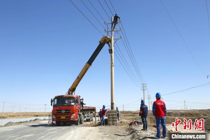 圖為青海海西供電公司員工在10千伏區(qū)七路15號(hào)桿更換桿塔組件?!?guó)網(wǎng)海西供電公司供圖