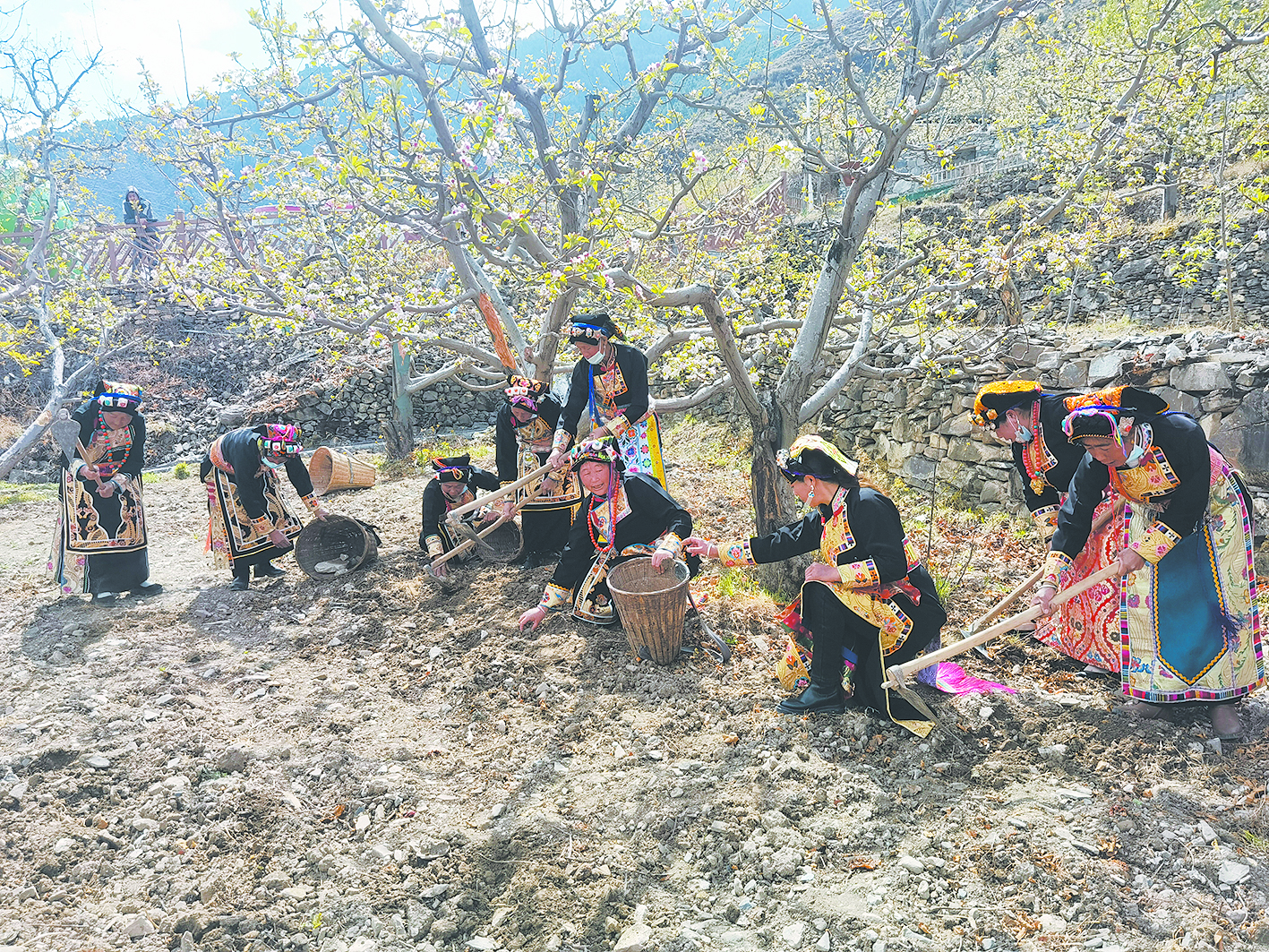 “老百姓看到蘋果花就看到了希望,期待蘋果產(chǎn)量高,品質(zhì)更好,能賣個好價錢,讓我們的日子越來越紅火。”村民朱學燕邊忙碌邊告訴記者。眼下正是蘋果樹急需補充營養(yǎng)的時候,同朱學燕一般,在蘋果樹下,村民們正忙著施肥、松土、拔草、澆水。