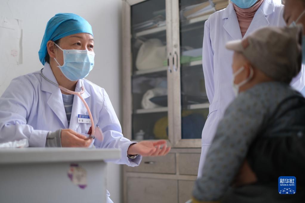 4月25日,青海省婦女兒童醫(yī)院醫(yī)生、青南支醫(yī)隊(duì)員孫敬(左一)在青海省玉樹藏族自治州人民醫(yī)院兒科門診坐診。新華社記者 韓方方 攝