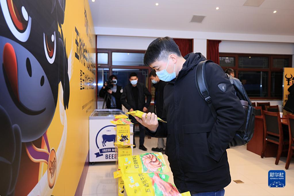 2月23日,“玉樹牦牛進北京”懇談會暨玉樹牦牛美食品鑒會在北京舉行,消費者在挑選月盛齋制作的玉樹牦牛肉醬鹵產品。新華社發(fā)