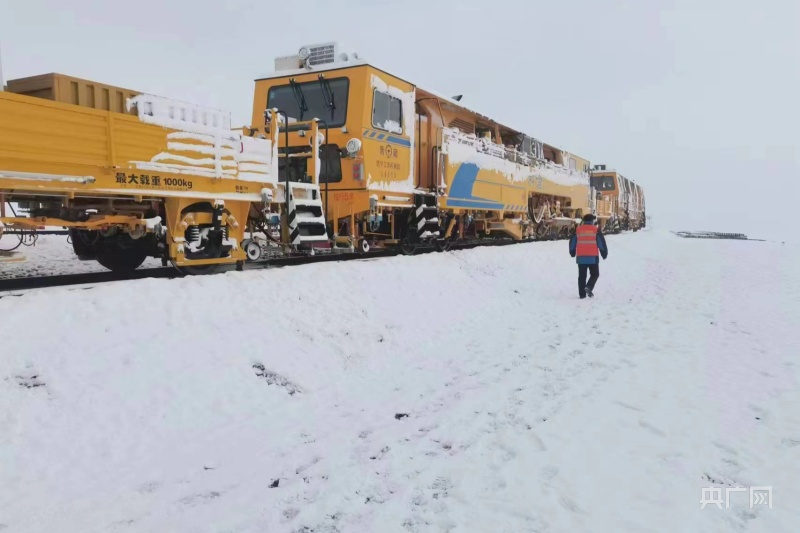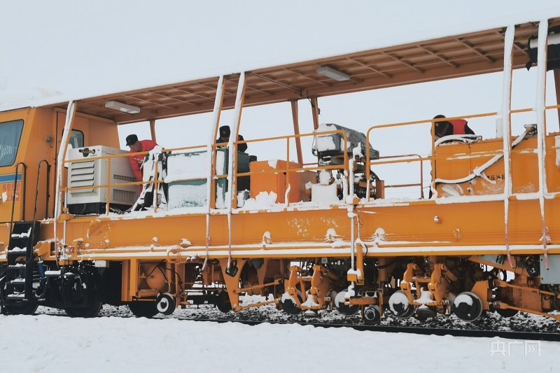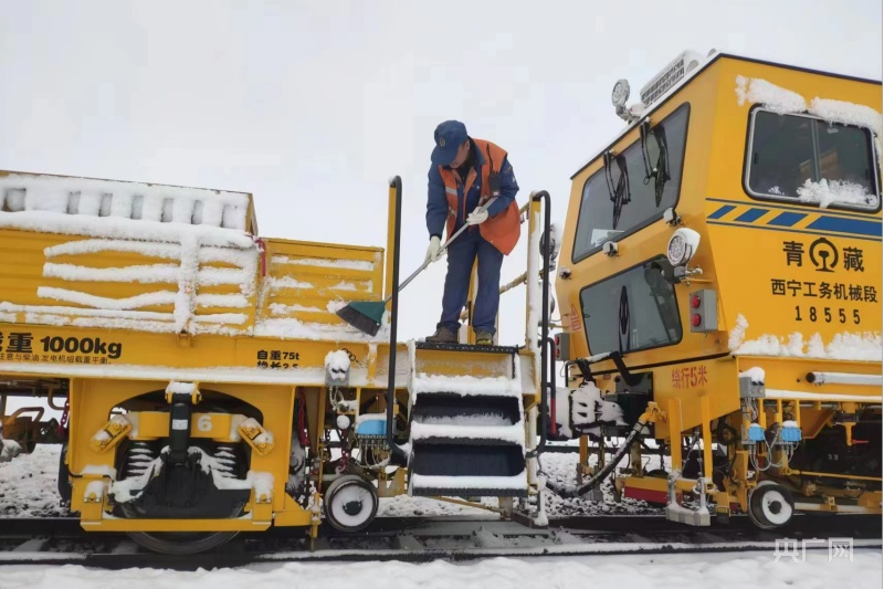昆侖山上,氣溫驟降,多處施工現(xiàn)場(chǎng)被大雪覆蓋,一片白雪皚皚。為確保施工順利進(jìn)行,近日,西寧工務(wù)機(jī)械段維修三車間的職工們開啟了對(duì)青藏鐵路格拉線望昆——昆侖山區(qū)間大機(jī)搗固施工作業(yè)。西寧工務(wù)機(jī)械段維修三車間主任王海峰在施工作業(yè)前,帶領(lǐng)車間職工清理積雪,同時(shí)對(duì)低溫狀態(tài)易發(fā)生故障的作業(yè)裝置進(jìn)行針對(duì)性保養(yǎng)?!白⒁饽_下積雪濕滑,扶穩(wěn)抓牢,保證自身人身安全?!避囬g副主任張小波提醒說。