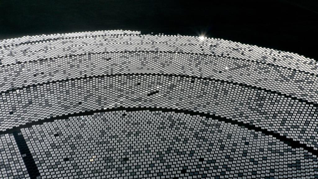 這是2021年3月3日拍攝的位于青海省海南藏族自治州共和縣光伏產(chǎn)業(yè)園內(nèi)的一處塔式光熱發(fā)電項目(無人機照片)。新華社記者 張宏祥 攝
