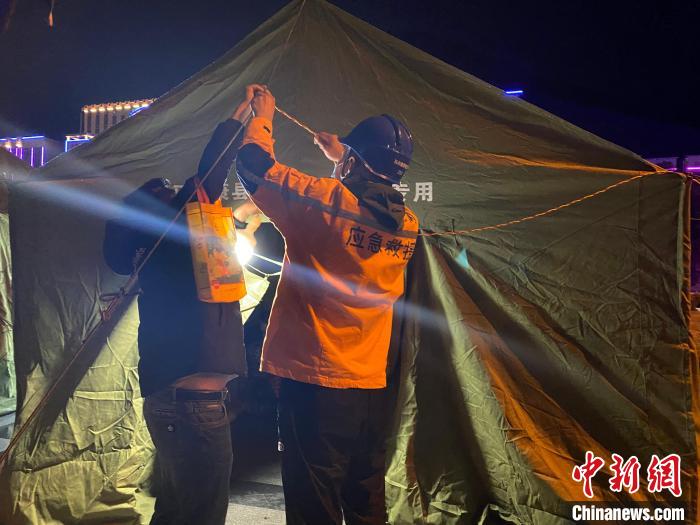 救援人員正在搭建帳篷。四川應(yīng)急廳供圖