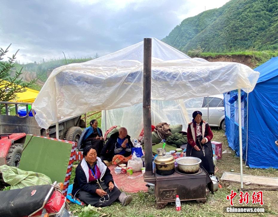 6月10日晚,93名阿壩森林消防支隊救援人員徒步抵達震中草登鄉(xiāng)后,迅速轉(zhuǎn)移群眾、搭建帳篷、發(fā)放應(yīng)急物資。據(jù)了解,此次地震造成草登鄉(xiāng)呷秋里村、科拉機村受災(zāi)較重,有部分房屋倒塌。目前,消防救援人員正全力搶修道路、排除路障,確保受困村民安全轉(zhuǎn)移。圖為馬爾康市草登鄉(xiāng)呷秋里村村民們在帳篷里休整。 四川森林消防 供圖