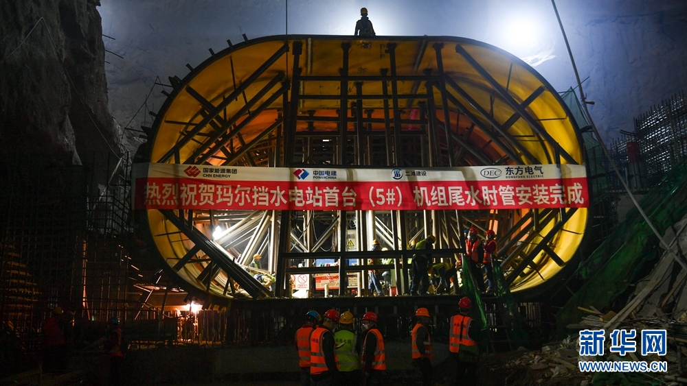 瑪爾擋水電站地下廠房目前全部開挖完成,首臺機(jī)組尾水肘管安裝完成,施工已經(jīng)全面從開挖轉(zhuǎn)序到混凝土澆筑階段,其余部位正有序推進(jìn)。