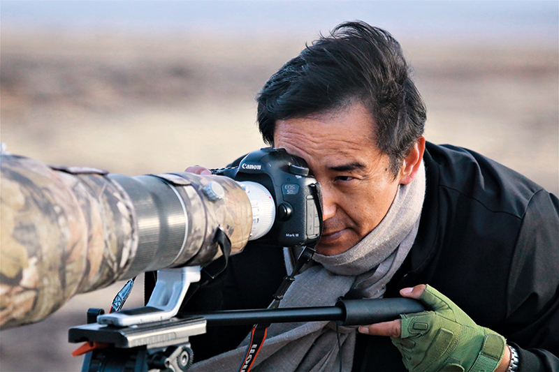 夕陽西下,大風(fēng)肆虐。49歲的才項(xiàng)南加系上圍巾趕忙下車,從后備箱包裹嚴(yán)實(shí)的毛毯里拿出相機(jī)和三腳架,稍做調(diào)試后,便扛著裝備三步并作兩步地趕往200米外的一片濕地。“趕緊去看看,兩只黑頸鶴在喝水呢!”他說。