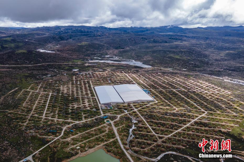 6月28日,四川稻城,航拍占地面積約1.36平方公里的稻城高海拔宇宙線觀測(cè)站。海拔4410米的四川省甘孜州稻城縣海子山,5216個(gè)電磁粒子探測(cè)器和1188個(gè)繆子探測(cè)器,以及占地78000平方米的水切倫科夫探測(cè)器有序分布在1.36平方公里范圍,十分壯觀,這是中國(guó)建設(shè)的第三代高山宇宙線實(shí)驗(yàn)站。中新社記者 劉忠俊 攝