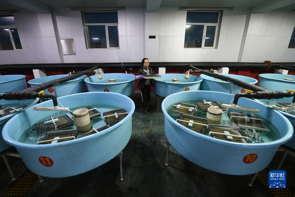 6月29日,在青海湖裸鯉沙柳河泉吉河增殖實驗站,工作人員把收集的湟魚受精卵放入孵化盒。新華社記者 范培珅 攝
