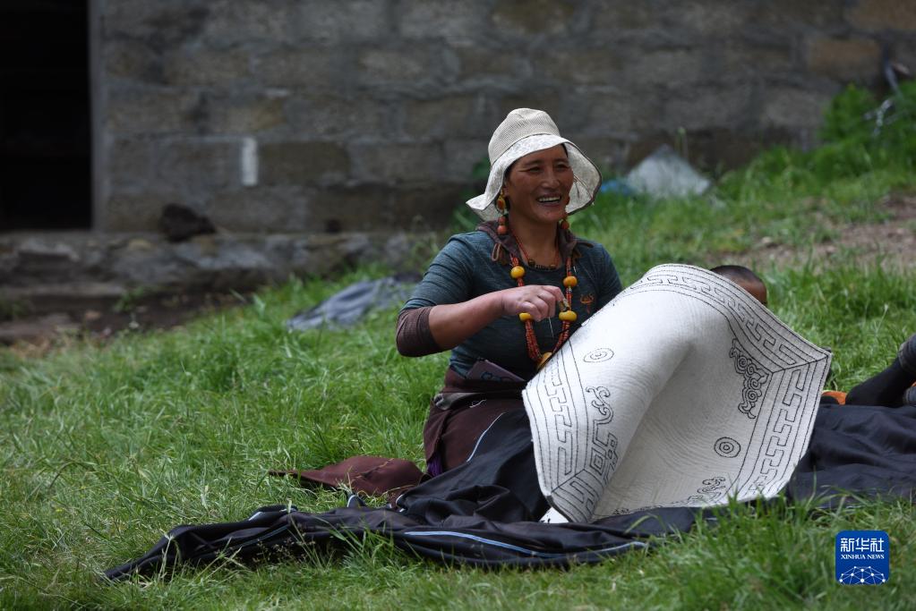 7月13日,羅日卓瑪在制作卡墊。新華社記者 陳燮 攝