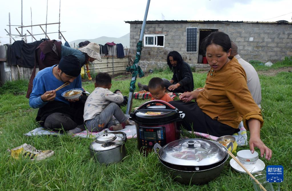 7月13日,巴周一家在吃午飯。新華社記者 陳燮 攝
