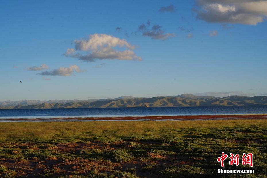 冬格措納湖位于青海省果洛藏族自治州瑪多縣,是一片地處海拔4100多米的淡水湖。夏日的冬格措納湖,湖水湛藍(lán),宛如跌落群山之中的“藍(lán)寶石”。紅、黃、綠色的草灘與湖水相互映襯,美景如畫。圖為冬格措納湖美景如畫。 馬銘言 攝