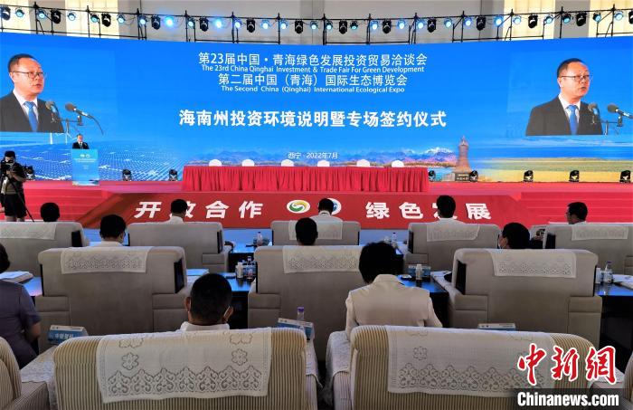圖為海南藏族自治州投資環(huán)境說明暨專場(chǎng)簽約儀式現(xiàn)場(chǎng)。祁增蓓 攝