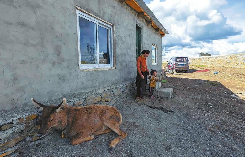 2022年7月14日,在海拔4450米的四川省甘孜州白玉縣安孜鄉(xiāng)門馬一村高原牧場,一只國家二級(jí)保護(hù)動(dòng)物白唇鹿跟隨牧民達(dá)瓦拉姆家的牦牛群,悠閑地在草場上覓食青草。吃飽喝足后的小鹿回到牧民定居點(diǎn)的達(dá)瓦拉姆家門口,還會(huì)主動(dòng)把頭伸到達(dá)瓦拉姆的懷里蹭來蹭去,呦呦地叫著賣萌。