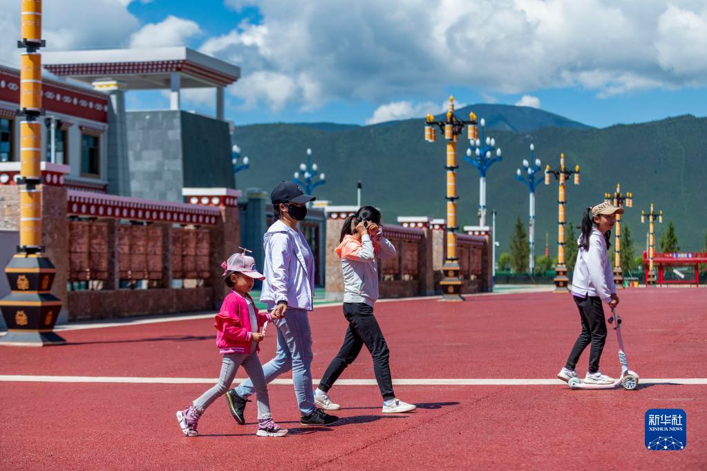 7月29日,人們在麗香鐵路香格里拉站站前廣場游玩。新華社記者 陳欣波 攝