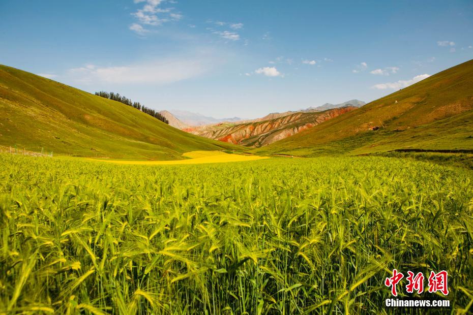 盛夏時節(jié),走進青海海北藏族自治州祁連縣,親臨卓爾山讓人感覺到這里環(huán)境幽靜,空氣清新,風(fēng)景秀麗,數(shù)十條褶皺山脈縱橫捭闔,紅色的砂巖礫石放射出丹霞地貌特有的光采。平緩的坡地上,油菜花、青稞,牧草、鮮花、原始森林相互間雜,田野、村莊與大自然融為一體,在大地上描繪出一幅氣勢恢弘色彩斑斕的畫卷。 趙海梅 攝