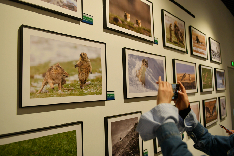 圖為祁連山國家公園青海片區(qū)展陳中心內(nèi)展出的攝影作品。卡婭梅朵 攝