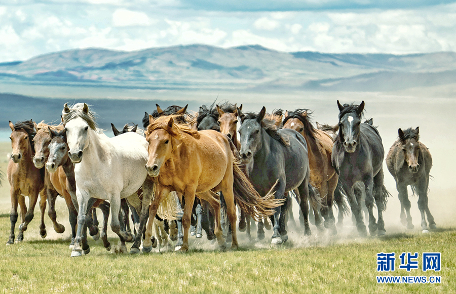 阿拉克湖國家濕地公園內(nèi),奔跑的駿馬。