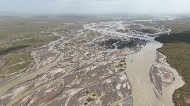 周銀軍說,在青藏高原上,江源河床下多是凍土,河水很難向下侵蝕。加上兩岸沒有山體形成自然約束,也不像平原地區(qū)修建堤防、護(hù)岸等水利工程,長江源地區(qū)河流水量大、水流快時(shí),河道沖刷以橫向變形為主,因此河床呈現(xiàn)千變?nèi)f化狀態(tài)。