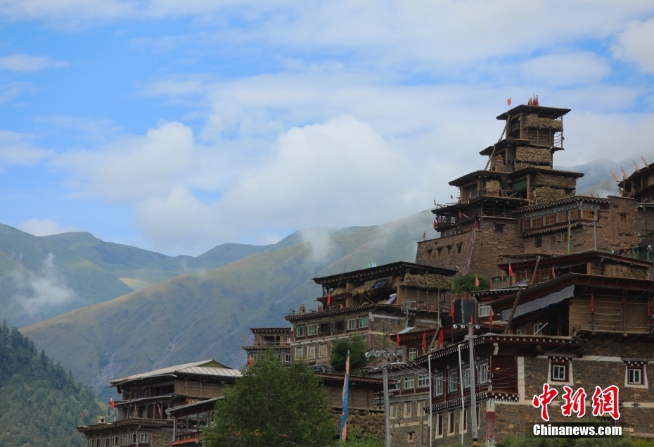 8月17日,日斯?jié)M巴碉房外景。日斯?jié)M巴碉房坐落于四川省阿壩藏族羌族自治州壤塘縣宗科鄉(xiāng)加斯?jié)M村石波寨,修建于元末明初,距今已有近700年的歷史。碉房共分九層,高25.6米,外型呈階梯狀,是一座保存完好的藏式傳統(tǒng)民居。2006年,日斯?jié)M巴碉房被列為全國(guó)重點(diǎn)文物保護(hù)單位。 中新社記者 王磊 攝