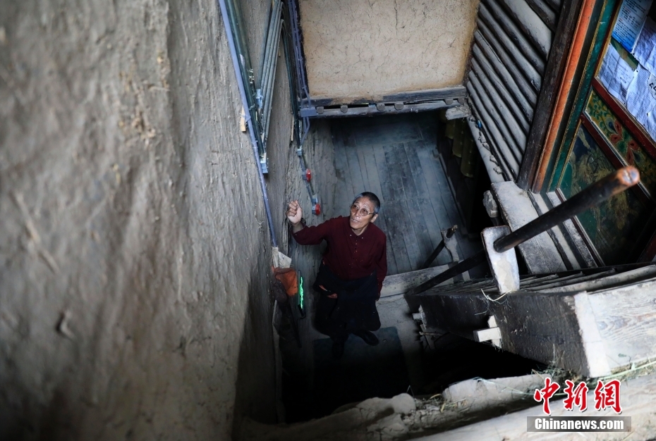 8月17日,日斯?jié)M巴碉房的主人洛吾王爾甲站在木梯上。日斯?jié)M巴碉房坐落于四川省阿壩藏族羌族自治州壤塘縣宗科鄉(xiāng)加斯?jié)M村石波寨,修建于元末明初,距今已有近700年的歷史。碉房共分九層,高25.6米,外型呈階梯狀,是一座保存完好的藏式傳統(tǒng)民居。2006年,日斯?jié)M巴碉房被列為全國(guó)重點(diǎn)文物保護(hù)單位。 中新社記者 王磊 攝