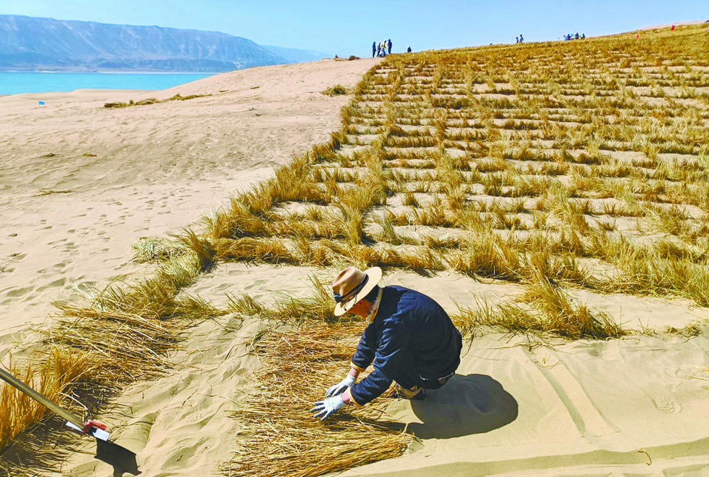 整齊排列的草方格,隨風(fēng)搖曳的烏柳樹,生機(jī)勃勃。青海省海南藏族自治州共和縣龍羊峽庫(kù)區(qū)北岸——曾經(jīng)的不毛之地,如今已煥然一新,一條條綠色長(zhǎng)廊盡顯生命的力量。自生態(tài)項(xiàng)目建設(shè)以來,共和縣通過草方格沙障與烏柳插桿水鉆造林、檸條直播及沙蒿撒播相結(jié)合等方法進(jìn)行荒漠化治理,造林成活率達(dá)到90%以上,創(chuàng)造出龍羊峽北岸的“綠色奇跡”。