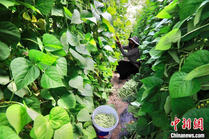 熱布卡蔬菜基地大棚內,工人正在采摘四季豆。王磊 攝