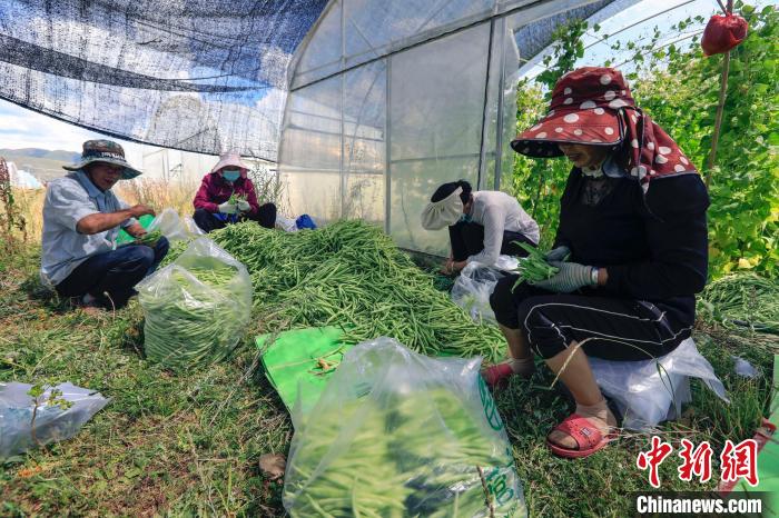 八月中旬,在四川省阿壩藏族羌族自治州壤塘縣的熱布卡蔬菜基地,五月種植的第一批四季豆(學名菜豆,下同)正值豐收。50歲的陳老會年初從云南來到四川壤塘工作,她和工友們將剛采摘的四季豆篩選裝袋,近五十斤重的包裝袋整齊鋪滿地面?!拔覀兿挛绮烧氖卟?,第二天早上就能出現在成都的市場上?!彼^也不抬地忙著手中的活。