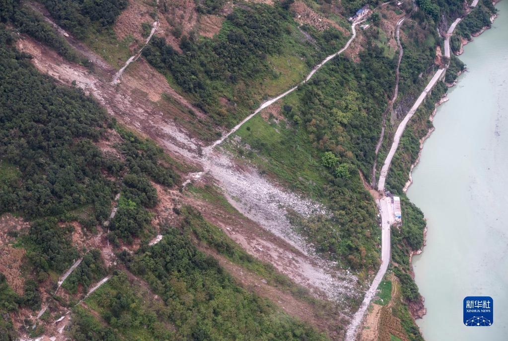 這是9月7日拍攝的雅安市石棉縣王崗坪彝族藏族鄉(xiāng)幸福村二組附近的照片,可看到山體多處滑坡(無人機(jī)照片)。新華社記者 才揚(yáng) 攝