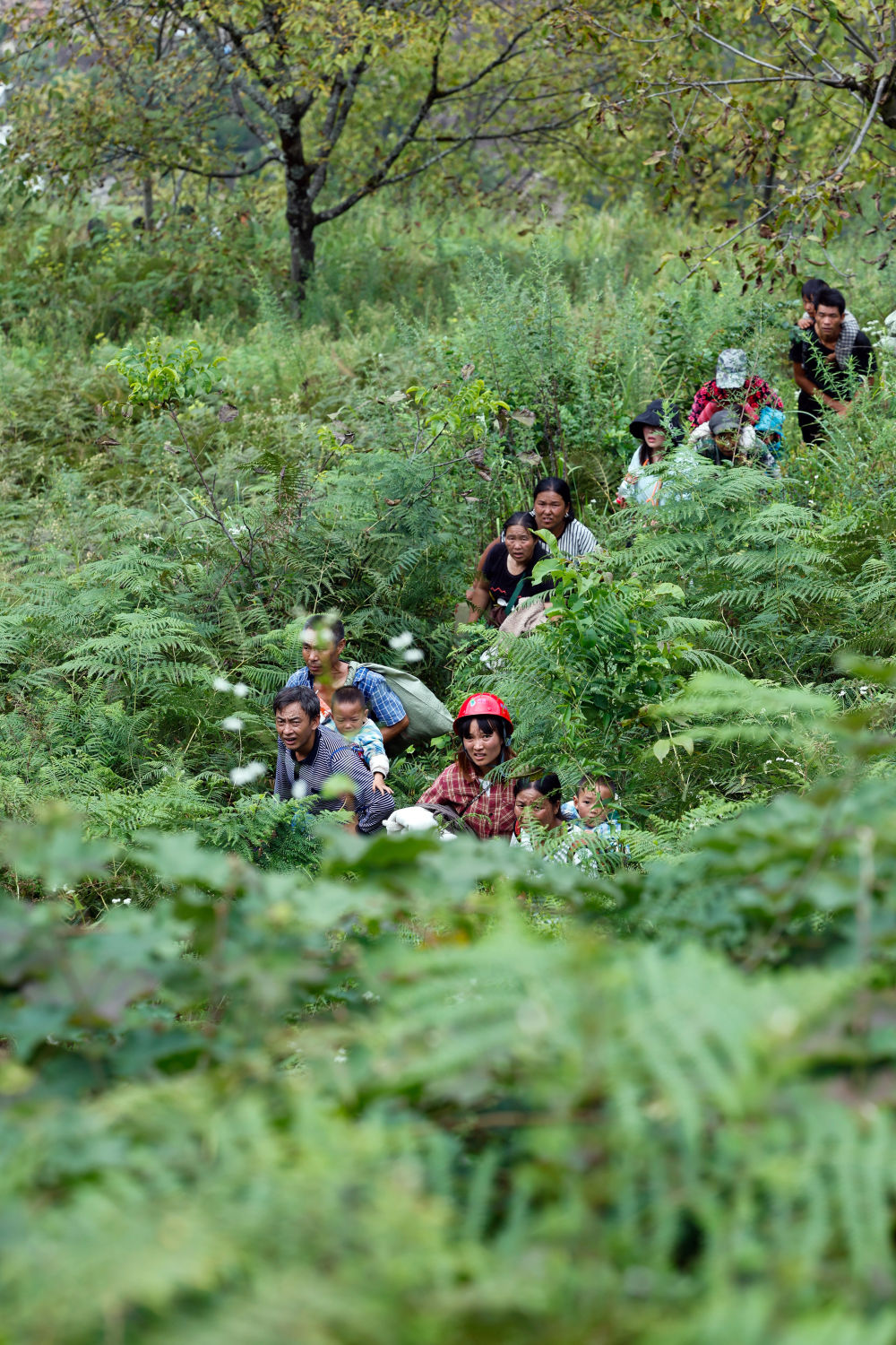 9月6日,灣東村村民攀爬高山向外疏散。