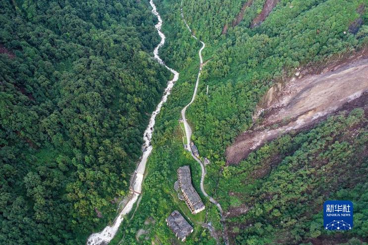 這是9月7日拍攝的海螺溝景區(qū)一號營地下游處的崩塌災(zāi)害現(xiàn)場(左上部分)(無人機照片)。新華社發(fā)(四川省冶勘設(shè)計集團有限公司供圖)