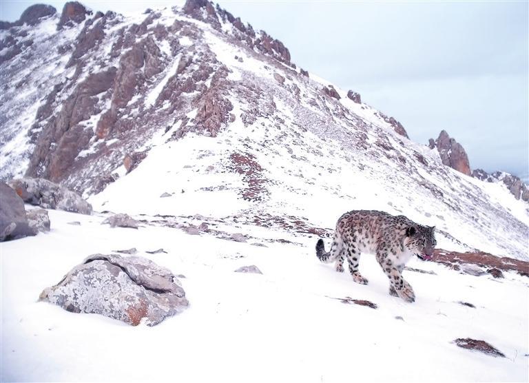 紅外線相機(jī)監(jiān)測(cè)到的國(guó)家一級(jí)保護(hù)動(dòng)物雪豹。甘南州生態(tài)環(huán)境局供圖