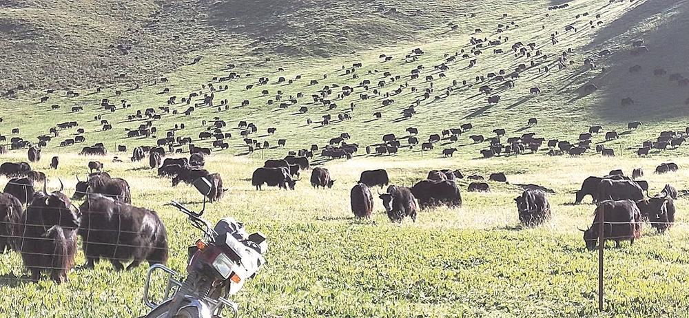同德草原上成群的良種牦牛。洪玉杰 攝