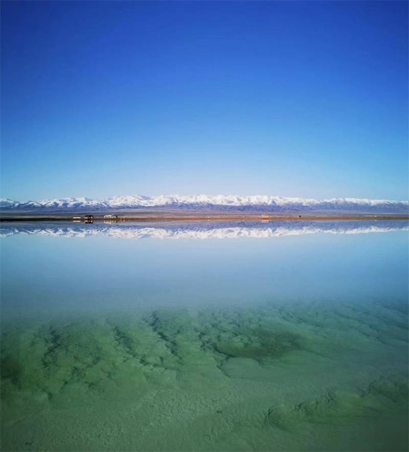 位于青海省海西蒙古族藏族自治州烏蘭縣的茶卡鹽湖鹽層開始結晶,湖水逐漸純凈,平靜的湖水如同天然鏡面,倒映著湛藍天空與皚皚雪山,呈現出一幅別樣高原秋日美景。