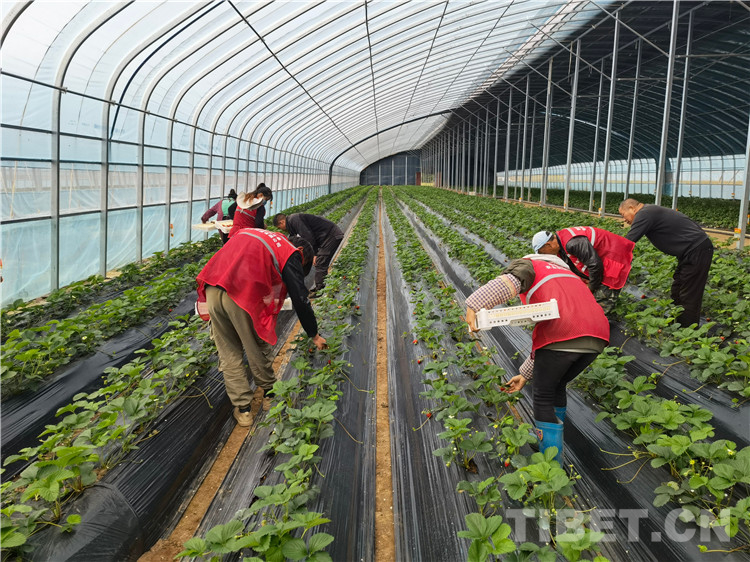 中國西藏網(wǎng)訊 時下,在四川省甘孜藏族自治州理塘縣濯桑現(xiàn)代農(nóng)業(yè)產(chǎn)業(yè)園區(qū),120畝草莓經(jīng)過100天的生長后迎來了收獲季。走進園區(qū)康呷村種植基地,大棚里的草莓長勢喜人,當?shù)?0多名農(nóng)牧民群眾正忙著梳葉、采摘,大棚里四處洋溢著豐收的喜悅?!耙郧拔覀兂朔N青稞、土豆之外,其余大多數(shù)時間都到處去打臨時工,收入也很不穩(wěn)定,一年到頭只能掙幾千元錢。”現(xiàn)年25歲的濯桑鄉(xiāng)漢戈村民格絨志瑪說道。