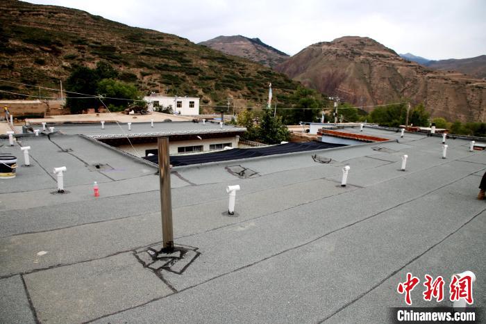 圖為同仁市隆務(wù)鎮(zhèn)措玉村屋頂鋪設(shè)的防水層。馬芝芬 攝