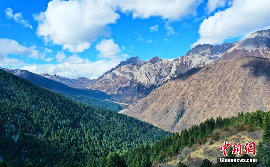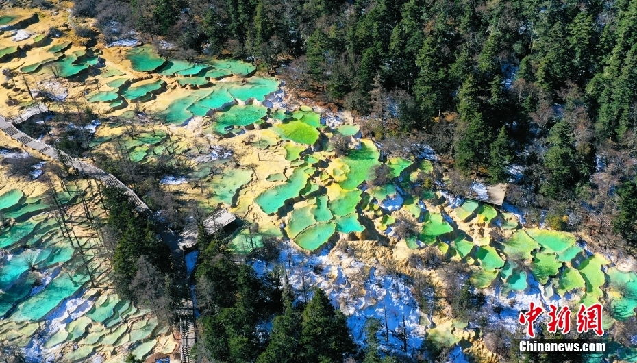 11月18日,航拍四川省阿壩藏族羌族自治州松潘縣黃龍景區(qū)風(fēng)光。(無(wú)人機(jī)照片) 中新社記者 安源 攝