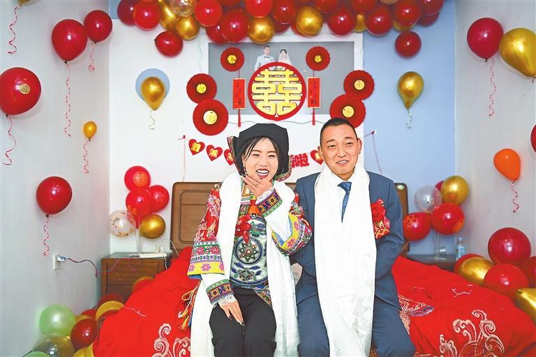 在熱鬧的鞭炮聲和一聲聲祝福中,一場喜慶的藏族婚禮在新康村舉行。搬出大山,遠(yuǎn)離地災(zāi)危險(xiǎn)區(qū),新康村村民本永龍?jiān)趯挸ㄕ麧嵉男录依镉⑺蠲利惖男履铩?/p>