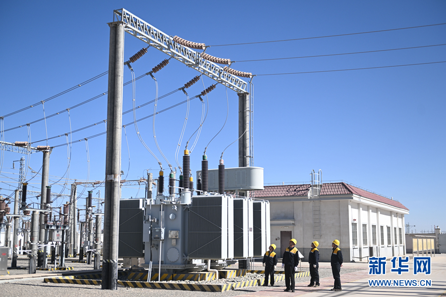2月5日,在青藏集團有限公司西寧供電段格爾木南變電所,王永忠(左二)與同事在巡檢供電設備。新華社記者 張龍 攝