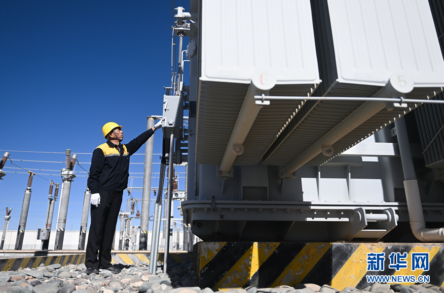 2月5日,在青藏集團有限公司西寧供電段格爾木南變電所,王永忠在巡檢供電設備。新華社記者 張龍 攝