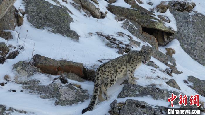 得知情況后,年保玉則景區(qū)管理局立即派員前往現(xiàn)場察看,歷經(jīng)連續(xù)三天的追蹤足跡和蹲點守候,終于在索乎日麻鄉(xiāng)境內(nèi)一處海拔4500米的巖石區(qū)內(nèi),用無人機拍攝到兩只成年雪豹的清晰影像。