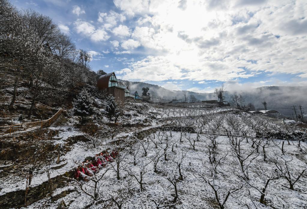 2月9日,一場(chǎng)大雪后,克枯村的李子樹(shù)枝干上掛滿雪花。新華社記者 王曦 攝