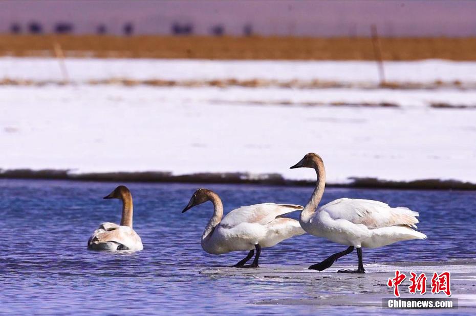 圖為天鵝結(jié)伴散步。俄日藏俄 攝