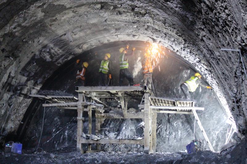 近日,由中鐵十六局集團承建的滇藏鐵路麗香段哈巴雪山隧道施工現(xiàn)場傳來喜訊,哈巴雪山隧道8號至8-1號橫通道區(qū)間(全長248米)順利貫通。據(jù)悉,哈巴雪山隧道是全線重難點控制性工程,全長9523米,最大埋深1155米,為I級高風險隧道。原先按照2個橫洞、1個斜井、1個平導組織施工,后因施工艱難,將平導延長至5774米,并將平導內(nèi)與正洞聯(lián)接橫通道增加到12個。此次貫通的8號至8-1號橫通道貫通后,哈巴雪山隧道僅剩2個橫通道區(qū)間61.8米尚未貫通。預計今年5月底實現(xiàn)哈巴雪山隧道貫通。
