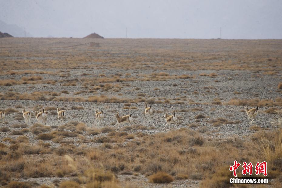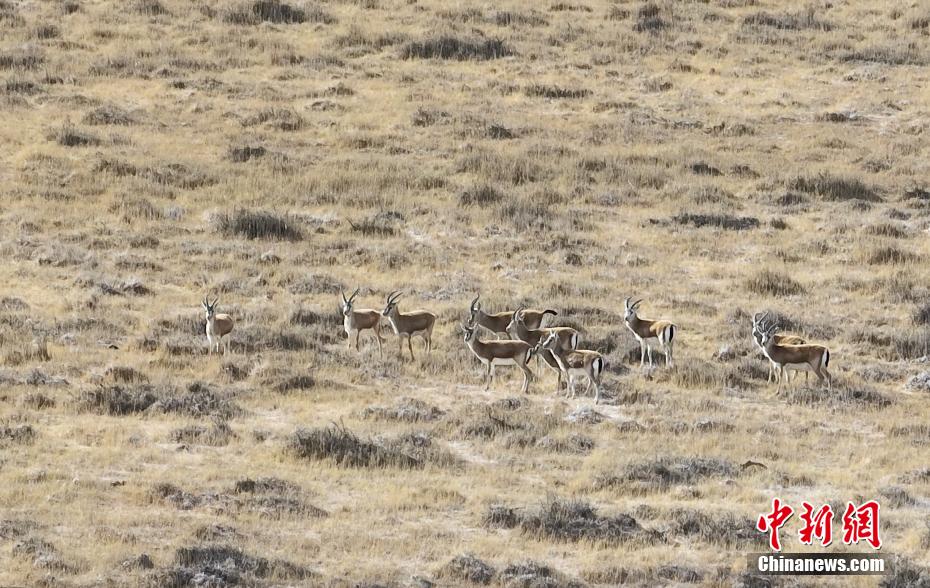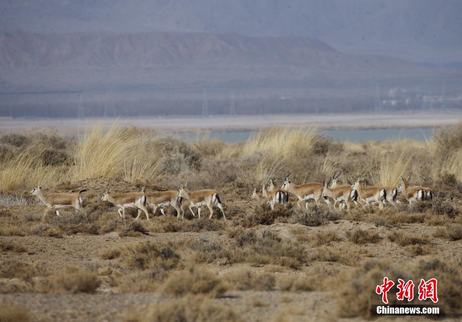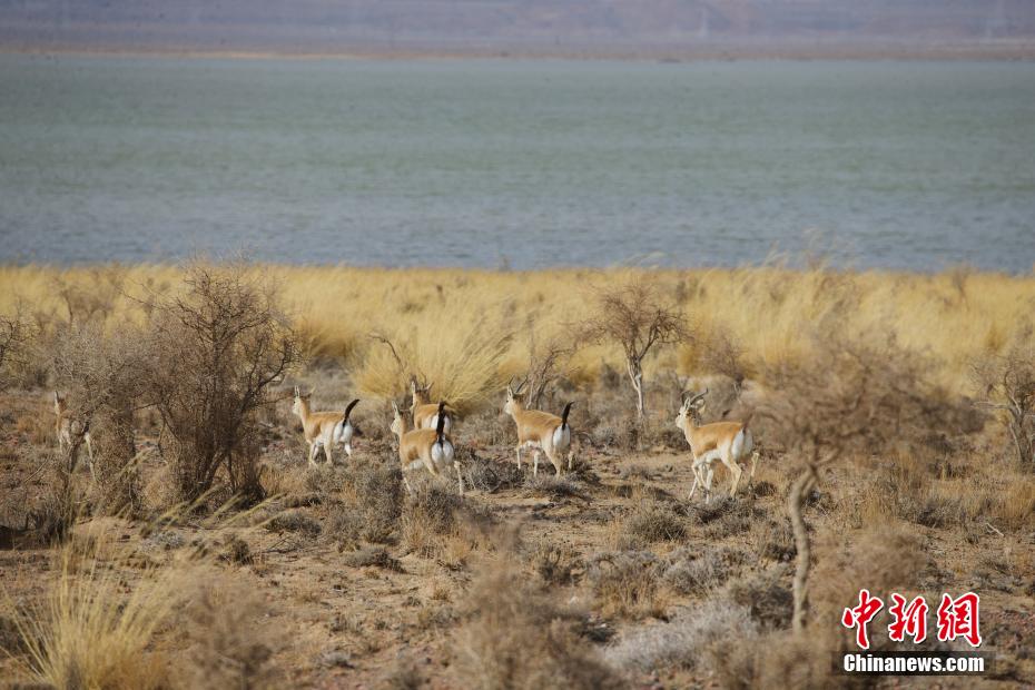 圖為都蘭湖國(guó)家濕地公園內(nèi)成群的鵝喉羚。馬銘言 攝