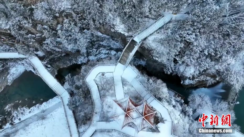 航拍甘南大峪溝雪景,銀裝素裹美如畫。