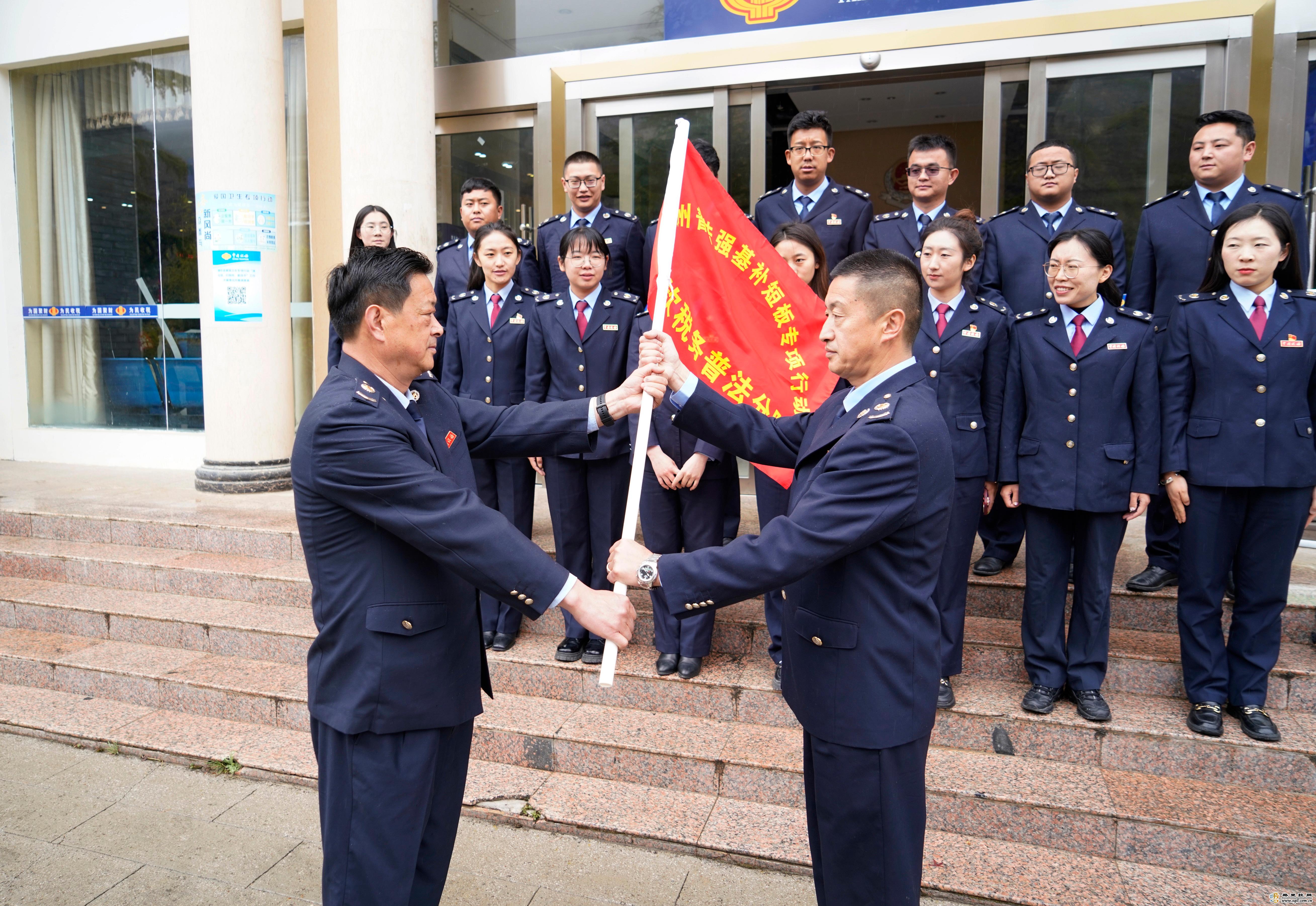 近日,國(guó)家稅務(wù)總局迪慶州稅務(wù)局舉行迪慶州普法強(qiáng)基補(bǔ)短板專(zhuān)項(xiàng)行動(dòng)全州稅務(wù)系統(tǒng)普法分隊(duì)授旗儀式,拉開(kāi)我州第32個(gè)全國(guó)稅收宣傳月活動(dòng)的序幕。儀式上,州稅務(wù)局相關(guān)負(fù)責(zé)人為三縣(市)及開(kāi)發(fā)區(qū)稅務(wù)局稅務(wù)普法分隊(duì)授旗。
