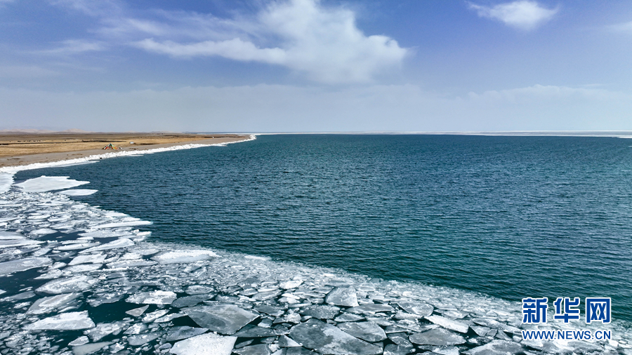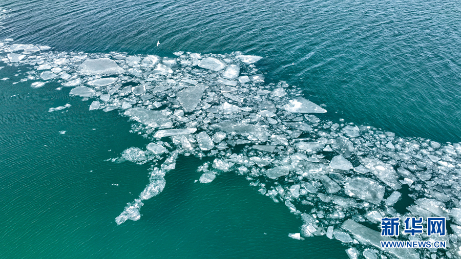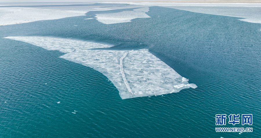 這是4月8日拍攝的青海湖開湖景觀(無人機照片)。新華網(wǎng) 宋忠勇 攝