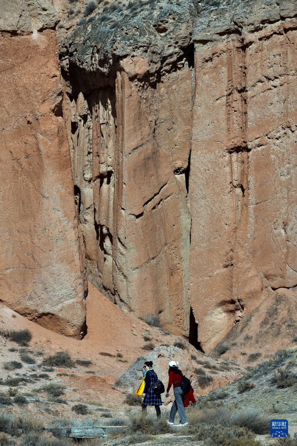 4月8日,游客行走在青海貴德國家地質公園丹霞地貌間。新華社記者 黃豁 攝